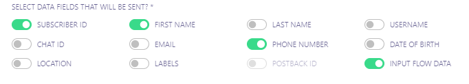 5. Choose the data fields that you want to send to your selected website.